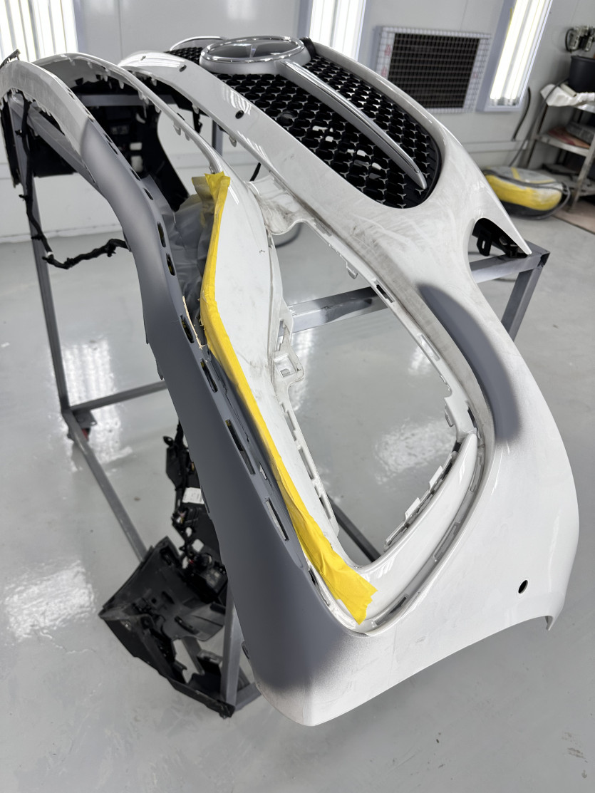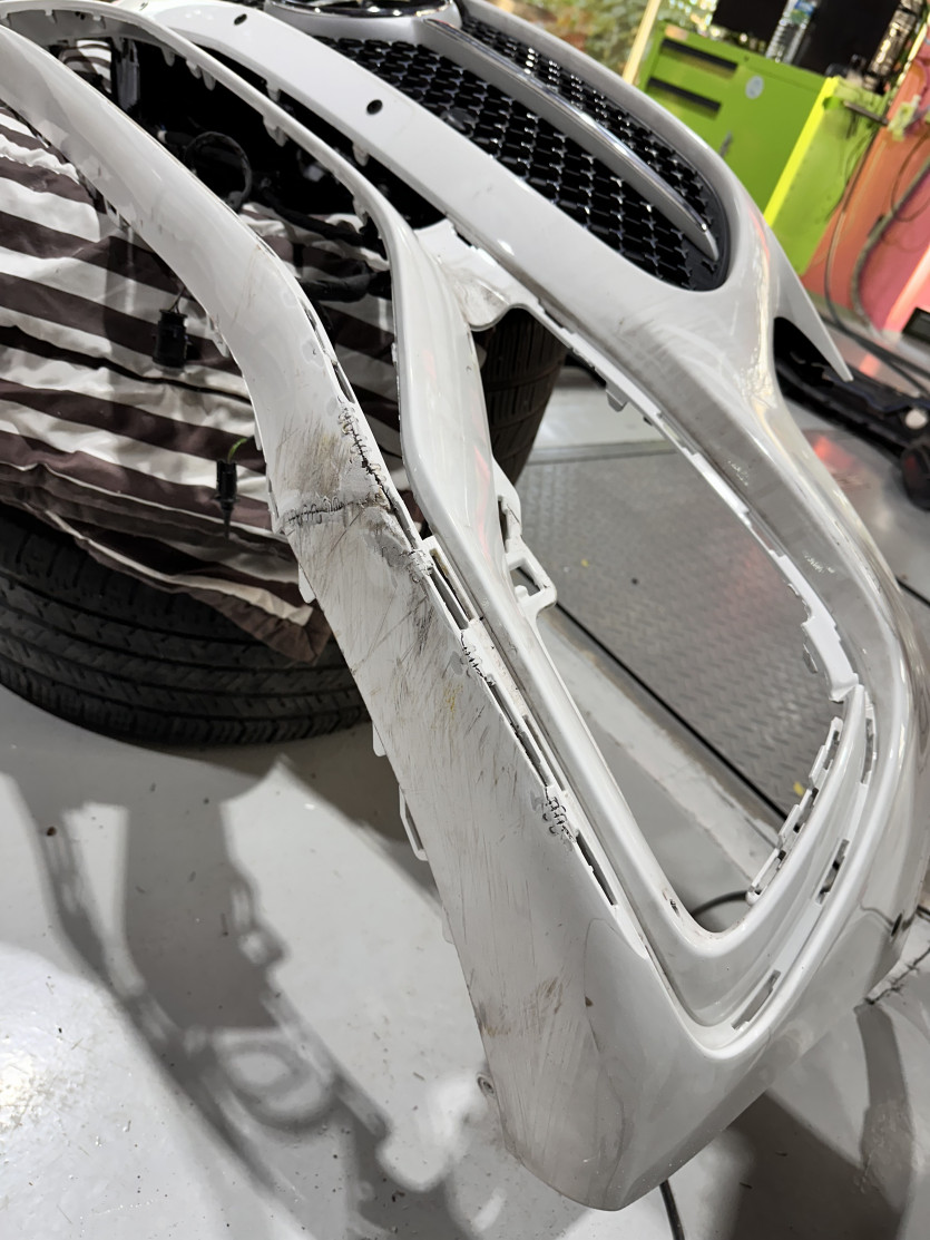 오늘은 벤츠 C300 앞범퍼 하단 깨짐 복원 작업을 진행했습니다.